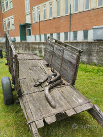 REGALO REGALO REGALO Carro agricolo con struttura in ferro e traino in buone condizioni. Gommato buono. Parti in legno come ad esempio il pianale da rivedere. Se rimesso in ordine e attaccato ad un trattore potrebbe di nuovo svolgere la sua funzione. Carico, consegna e scarico con autocarro con gru GRATUITA !! zone limitrofe.
