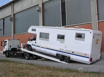 Carroattrezzi Eurocargo 120EL22P, 2014, sosp. Pneumatiche, cambio manuale 8 marce, 6cilindri, km 268.000, versione bassa, passo 4455mm con attrezzatura nuova fulloption mod. T5 con forca avente funzione anche di braccio gru oppure distabilizzatore. Lunghezza pianale 6300mm. Portata utile circa 5800kg