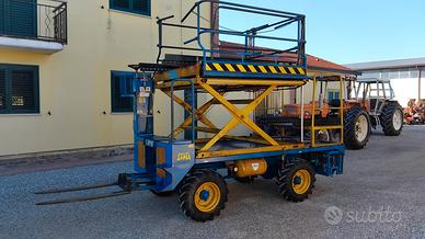 Carro raccolta marca candi con motore perkins a 3 cilindri raffreddato a liquido, pedana elevabile idraulica, muletto anteriore, trazione idrostatico, 4 ruote motrici e sterzanti, completa di documenti