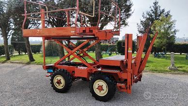 Carro raccolta marca festi a 4 ruote motrici, motore lombardini 2 cilindri diesel raffreddato ad aria, trasmissione idrostatico a 2 velocità, sterzante solo anteriore, pedana idraulica altezza massima da terra mt 2.10, muletto posteriore pee scarico bins, pedana larga mt 1.50, carreggiata ruote larghezza mt 2.00