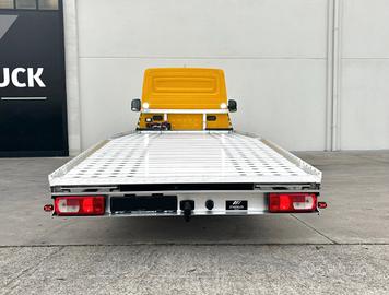 Allestimento nuovo Le Mans 5.45 x 2.13 totalmente in alluminio, rampe maggiorate da 43cm in alluminio, gancio di traino 2500 kg , soffioni rinforzati sull'asse posteriore con regolazione da cabina, n.2 cassette attrezzi con 4 cinghie e 2 prolunghe rampe in alluminio, tanica acqua lavamani, fari led retrocabina, luci ingombro led, paracicli doppi colorazione a scelta pre consegna, verricello professionale traslabile con radiocomando e fune sintetica antigraffio