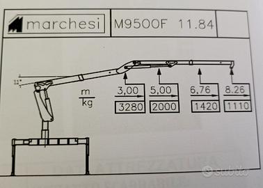 Gru/Caricatore scarrabile MARCHESI M9500F 11.84 anno 2008 a 2 Sfili idraulici con Polipo Rozzi RP280 a 6 pale.