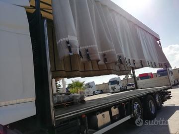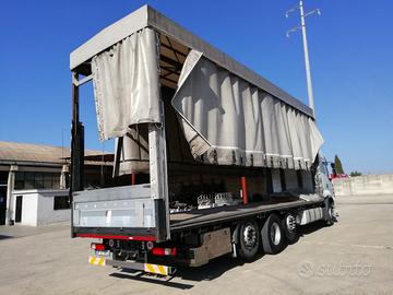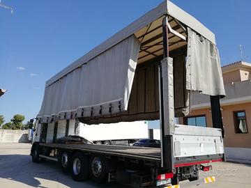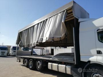 Cassone centinato e telonato, alla francese senza sponde laterali, lunghezza esterna mt.9,60, completo di laterali scorrevoli, con alzabbassa, sistema di copriscopri laterale, già disponibile il relativo certificato di provenienza.