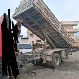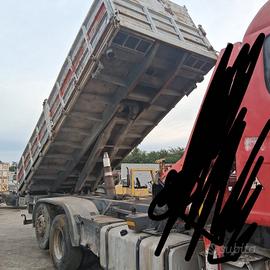 Cassone ribaltabile trilaterale con sponde in ferro di 6.30m di lunghezza e di 2.50m di larghezzaPistone e carrello in buone condizioni