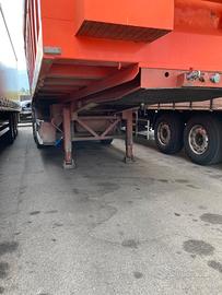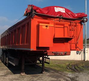 Cassone ribaltabile posteriore mt.11,00 in acciaio Adamoli ad alta resistenza, altezza sponde mt. 1,60, porta posteriore a due battenti con chiusura a bretella e spinotti inferiori di sicurezza. Cilindro di ribaltamento sottocassa. N° 3 assali (1° singolo, 2° e 3° gemellati fisso) N° 10 gomme tipo 315/80 R22.5