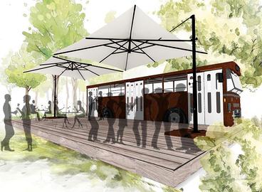 Si suggerisce l'uso per allestire un'area all'aperto con un postazione fissa tipo un container adibito a Bar o un Chiosco.