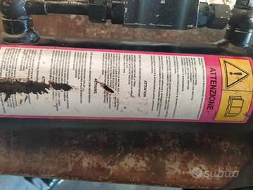 cilindro idraulico con attacchi per trattore da 110 cv in su, compreso dei 2 tubi con attacchi rapidi. Lunghezza dai fori 58 cm + 25 di allungamento, diametro 10 cm. Consegna a mano