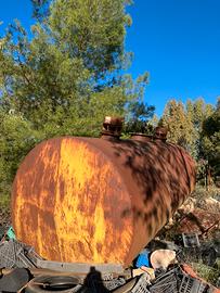 Vendesi cisterna in buono stato, in acciaio rivestita internamente in plastica, adatta a vari usi agricoli, per serbatoio irrigazione sia per caduta o pompaggio. Solo l'acciaio ha un valore di 5.000€. Facile da caricare per il luogo di deposito.