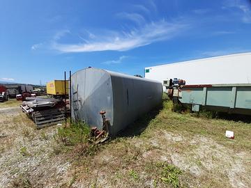 Cisterna riscaldata per emulsione bituminosa, peso a vuoto 4.800 kg, capacità 36 m3, dimensioni 8.100 mm x 2.500 mm x 2.500 mm.