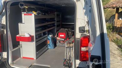 Cassone posteriore in ottime condizioni con pianale e rivestimento su misura, ganci di ancoraggio per materiale e scaffalatura su misura che si vede in foto