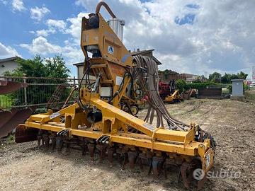 Combinata Alpego erpice rotante seminatrice da 4m fissa- erpice rotante a coltelli modello RH2-400R fisso con rullo packer e seminatrice a falcioni modello AS3-400P con spandiconcime frontale modello TR-AS3-2 adatta per semina di soia, erba medica, ecc.