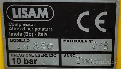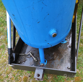 Compressore con tubo da 50 mt con bobina avvolgente, serbatoio da 50 litri e serbatoio ausiliario da 200 litri, attacco posteriore rinforzato per rimorchio.