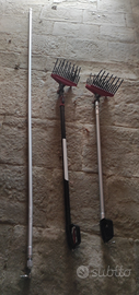 Forbice corta, Svettatoio Campagnola con asta telescopica da 2,5 mt a 4 mt, battitore Lisam con asta telescopica 1,5 mt-3 mt, battitore Lisam con asta 1 mt e prolunga da 3 mt.