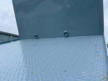 TITOLO: CONTAINER SCARRABILE NUOVO A PIANALE SENZA SPONDE CON CODA A ZERO PER CARICO MEZZI CON PAVIMENTO RINFORZATO IN APPOGGIO ALLE TRAVI DA 200 MM RINFORZATE DA MT. 2,50 NELLA MEZZERIA NELLA PARTE ESTERNA PIU' RINFORZO NEL PUNTO DI SNERVATURA ANTERIORE, 2 GANCI DI ANCORAGGIO A SCOMPARSA E FORI SU ENTRAMBI I FIANCHI H. 20 CM E PIATTO DA 1 CM
