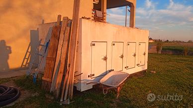 LARGHEZZA ESTERNA 2.25 METRI LUNGHEZZA ESTERNA 4,2 METRI ALTEZZA ESTERNA 2,1 METRI SPESSORE COIBENTAZIONE 10 CM 8 APERTURE LATERALI A SPORTELLO. SPORTELLO A 2 ANTE PER ACCESSO FRONTALE SI OFFRE A COSTO ZERO A CHIUNQUE DESIDERI FARNE UN BUON USO. È IN OTTIME CONDIZIONI. RITIRO A SPESE DI CHI LO DESIDERA. NON VOGLIO ALCUN COMPENSO.