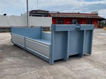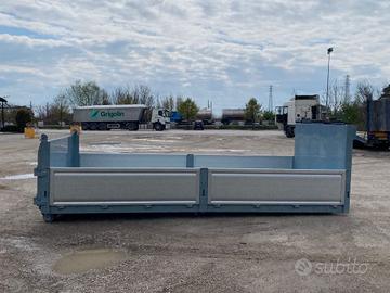 TITOLO: CONTAINER NUOVO A PIANALE CON PIANTONI RIMOVIBILI IN FERRO E DUE SPONDE PER LATO IN TR5 E SPONDA POSTERIORE IN FERRO A 3 EFFETTI A LIBRO, RIBALTABILE VERSO L'ALTO E RIBALTABILE VERSO IL BASSO CON TRAVI IN APPOGGIO DA 200 MM