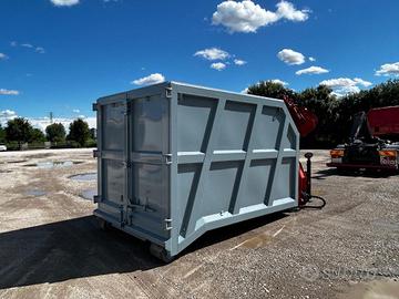TITOLO: CONTAINER NUOVO SCARRABILE A CIELO APERTO PER INGOMBRANTI IN HARDOX E APERTURA POSTERIORE CON DUE PORTE A LIBRO, TRAVI DA 160 MM CON RINFORZO A ELLE SULLO SQUADRO PIU' GRU NUOVA MARCHESI M6Z 02.73 E POLIPO NUOVO ROZZI 4 PALE CON ROTORE E COMANDI CON JOYSTICK