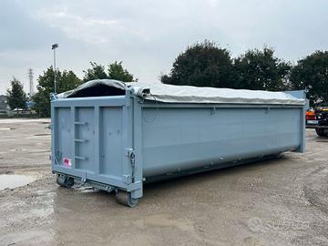 TITOLO: CONTAINER NUOVO PER INERTI CON COPRI SCOPRI ,PORTA POSTERIORE UNICA APERTURA ANTA RIBALTA STAGNO - VASCA DI ROCCIA. Adatto a caricare anche scavatori Container di forma arrotondata rinforzata con gancio maggiorato da 600 mm , rinforzo nel punto di snervatura parte anteriore, travi da 200 mm rinforzate nella parte centrale (punto di scarramento), ruote posteriori maggiorate. Fondo in appoggio alle travi con mensole laterali di supporto. Spacco di roccia sul perimetro superiore del container
