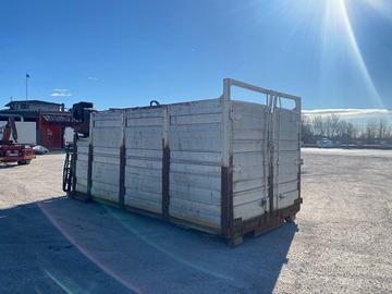 CONTAINER SCARRABILE USATO IN ALLUMINIO A CIELO APERTO CON APERTURA POSTERIORE CON 2 PORTE A LIBRO + GRU B.O.B. CON POLIPO 5 PALE CON ROTORE MECCANICO