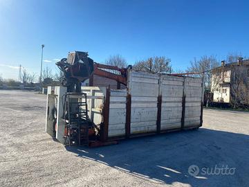 CONTAINER SCARRABILE USATO IN ALLUMINIO A CIELO APERTO CON APERTURA POSTERIORE CON 2 PORTE A LIBRO + GRU B.O.B. CON POLIPO 5 PALE CON ROTORE MECCANICO