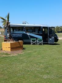 Mezzo super efficente dotato di tutta l'attrezzature di un ristorante (frigoriferi, congelatori, cappa, abbattitore, forno, cucina, friggitrici, churrasco, impastatrice, stendipizza, lavello, microonde ecc. su meccanica Daily 2800 turbo. Motore nuovo.