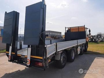 - cassone fisso/pianale mt. 7,40 c.ca con sponde laterali in alluminio da 40 cm e rampe idrauliche posteriori doppio effetto.