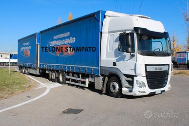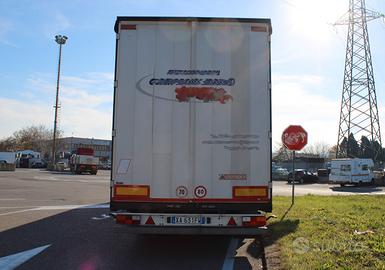 DAF CF 460 FAN MOTRICE CON RIMORCHIO, anno 2017, E6, 580.891 km, freno motore, portata utile 15.200 kg, sospensioni anteriori e posteriori pneumatiche, passo 5050, serbatoio gasolio in alluminio 590 litri, predisposizione PTO, gomme anteriori e posteriori 315/60 R22.5, ruota di scorta centina alla francese 8200x2550, alza/ abbassa elettroidraulico, copri/ scopri, porte posteriori, pianale in legno, attacco biga, staccabatterie, cabina letto, cambio automatico, climatizzatore, clima da fermo, frigorifero, autoradio, cronotachigrafo digitale.Scadenza revisione: 07/2026