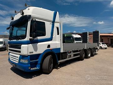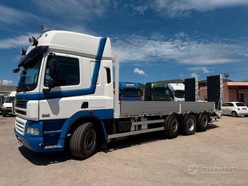Daf CF 85.460 anno 2012, euro 5, 4 assi stradale tridem (1+3), cambio manuale, freno motore potenziato, km 725000, aria condizionata, cabina letto, n' 10 pneumatici NUOVI marca , veicolo allestito con pianale di carico con doppie rampe sdoppiate apribili, lunghezza allestimento 8,20 mt, para cabina rinforzato, sponde in alluminio h 40, pianale rinforzato con pavimento striato antiscivolo, cassetti porta attrezzi, tanica lava mani in acciaio inox...