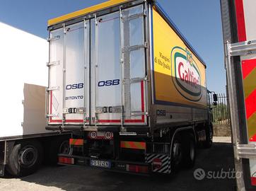 Cassone centinato ribaltabile bilaterale lungo 6500, alzabbassa, tetto copriscopri, terzo asse sterzante intelligente, cambio manuale, Retarder, CE Euro 3.