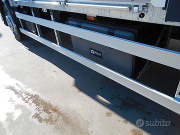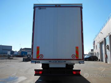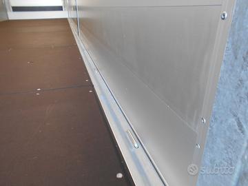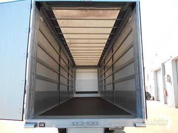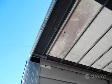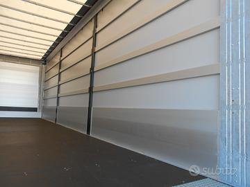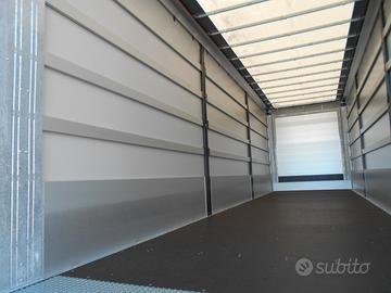 Centina con tetto sollevabile per carico. Fondo in multistrato da 30 mm. Sponde h 600 in tre sezioni con 4 file di listelli. Porte posteriori, tetto copri scopri.