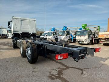 AUTOCARRO NUOVO IN PRONTA CONSEGNA* E6, cilindrata 13000 cc, cv 483, kw 355, 6 cilindri multicoppia, cambio automatico TraXon 12 marce, passo 4.20 mt, sbalzo posteriore 2.40 mt, assale anteriore 9.00 t a paraboliche, assale posteriore 20 t con sospensioni pneumatiche, serbatoio carburante da 430 litri, massa totale a terra relativa a peso telaio 28000 kg, massa massima relativa a barra di traino/giunto 53000 kg, aletta parasole esterna, fari ledi, aria condizionata, 2 posti in cabina, volante multifunzione, fendinebbia anteriori e posteriori, predisposizione presa di forza, sedile del conducente con sospensione pneumatica, sedile del conducente con braccioli regolabili su entrambi i lati, cruise control adattivo, norme di sicurezza ADR per classi AT+ FL+ EXII/III che include interruttore di isolamento della batteria sul telaio che può essere controllato in cabina, freno motore MX, scudo contro il sollevamento della polvere. *Possibilità di iperammortamento sul prezzo dell'eventuale allestimento. *Possibilità di contributo SABATINI sul totale dell'investimento. *Pronta consegna salvo il venduto.