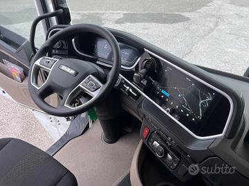 DAF XG 480 FT Veicolo nuovo da immatricolare 36 mesi di garanzia totale 12 mesi di assistenza stradale inclusi nella garanzia 60 mesi di garanzia sulla carrozzeria Cabina XG con sospensioni pneumatiche Daf Corner View - videocamera per l'angolo morto Spoiler cabina Visiera parasole Impianto di climatizzazione da parcheggio Riscaldamento ausiliare cabina: Webasto Carenature laterali con prolunghe superiori e inferiori Fari LED Videocamera per la retromarcia Sedile conducente Luxury Air, girevole Box frigo + cassetto porta oggetti Materasso 'Xtra Comfort con schienale/poggiatesta regolabili Illuminazione interna LED Radio FM/DAB/DAB+ con sistema Luxury a 5 altoparlanti Abbonamento Paccar Connect con navigatore incluso per 5 anni Sistema di riconoscimento limiti di velocità Sistema DAF DD -- Avviso stanchezza conducente LDWS - avviso di abbandono corsia VSC: controllo elettronico della velocità Immobiliser Predisposizione per un alcohol interlock System Pneus: 315/70 R 22.5 Continental CEPS5 Monitoraggio pressione pneumatici Bloccaggio differenziale Cambio automatico TraXon 12TX2210 ASR: sistema antislittamento Retarder ZF integrato con potenza di frenata massima pari a 680 CV (500 kW) Doppio serbatoio in alluminio con capienza totale di 1015 litri Predisposizione PTO Garanzia totale per 36 mesi incluso assistenza stradale per i primi 12 mesi Disponibili varie unità! Lesing in sede Contattare Davide: Giovanni: