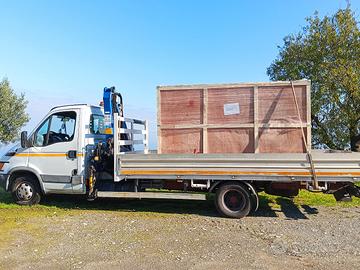 Iveco Daily 50c15 anno 2006 con gru PM 4 con 3 sfili , pianale fisso 470 lungo 200 largo.