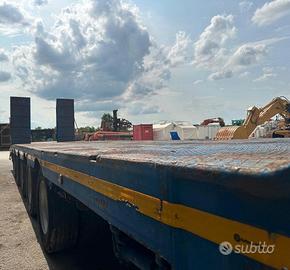 Modello 5S722P 5 assi Immatricolato 1991 Lunghezza totale MT 13,45 Portata utile 596 q. li Trasporto eccezionale Agganciabile a trattore 4x2 (2 assi) Sospensione meccanica Rampe posteriori idrauliche singole da MT 2.50x0.80 Buone condizioni generali Pneumatici 60% Regolarmente revisionato Disponibile per qualsiasi visione e prova