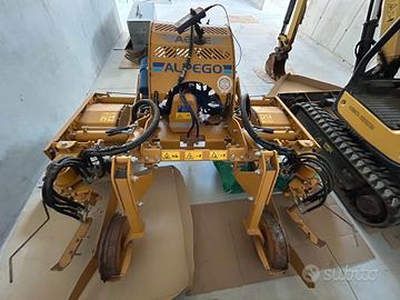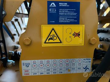 Basso assortimento di potenza permette di impostare il trattore a 750 rpm e lavorare a basso regime (garantire comunque 400 rpm reali in PDF per avere circa 240 rpm al rotore) il telaio centrale supporta su una coppia di cilindri elettro-idraulici i 2 corpi "Bio-Rotor + Interceppo" La lavorazione dell'elemento Bio-Rotor consente di lavorare in tutte le situazioni Gestione elettronica mediante consolle COMMAND J delle principali funzionalità - Regolazione automatica del livellamento e della profondità di lavoro (regolazione indipendente delle ruote posteriori) ; - Centraggio automatico sul filare; - Chiusura di sicurezza su filati con larghezza irregolare ( es. conici); - Impostazione elettronica della larghezza di lavoro; - Chiusura totale per trasporto e manovra; - Programma automatico inizio/fine filare; - Funzione 1/2 macchina per testate e filari con categoria 1 e 2 Ruote posteriori elettro-idrauliche per regolazione della profondità di lavoro interceppo elettroidraulico con tastatore ad alta sensibilità, munito di coltello standard e aletta scalzatrice Cosolle COMMAND J con display e 2 joystick Blocco elettrovalvole per la gestione di tutti i movimenti idraulici, dischi colmatori, kit completo accessori per lame. Cardano e tutti gli accessori in dotazione.