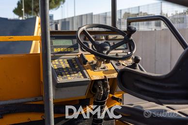 Dynapac F121-4W finitrice stradale gommata usata, anno 2000, larghezza di lavoro regolabile da 2,55 a 5 m, peso 17.000 kg, motore Cummins 112 kW, certificata CE. Disponibile a Roma.