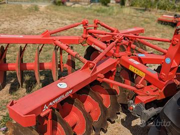 Erpice a dischi, Angeloni EFT 24 a 24 dischi. Larghezza di lavoro 2,8 metri, peso 715 kg. Adatto per trattori 75/95 CV. Snodo a X. Attacco a sollevatore. Condizioni ottime, seminuovo, usato pochissimo. Completo di certificato CE.