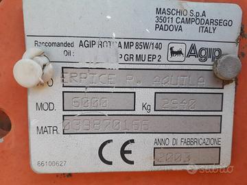 Erpice rotante MASCHIO AQUILA 600 Larghezza di lavoro cm. 600 Larghezza di trasporto cm. 250 Rullo a spirale Barra livellatrice Pieghevole idraulicamente Regolazione idraulica dei rulli Kit luci