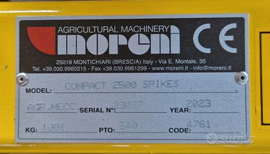 Erpicerotante nuovo potente e robusto marca Moreni mod. COMPACT 2500, denti a lama,rullo a spuntoni, lama livellatrice con supporti rinforzati cardano tedescoWalterscheid.