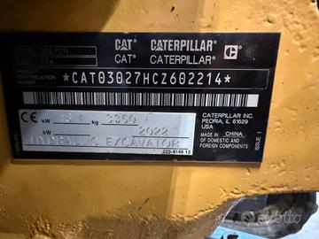 Escavatore Caterpillar 302.7 XL, anno 2022, 390 ore di lavoro. Macchina completa di cabina pressurizzata e climatizzata, carro variabile, impianto combinato trincia martello, attacco rapido Cangini CR30, 3 benne, martello promove completo di sella CR30.