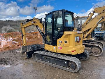 Escavatore Caterpillar 305 CR Next Gen, anno 2023. Macchina completa di cabina con aria condizionata, cingoli in gomma, contrappeso opzionale, impianto trincia, pinza, martello, 3 benne e attacco rapido Cangini CR50 meccanico.