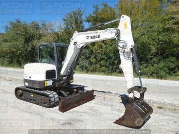 Escavatore cingolato Bobcat E62, anno 2019, 2604 ore di lavoro, peso 6200 kg, motore Yanmar 4 cil. 49 hp, valvole di blocco, lama, impianto pinza/rotazione, impianto martello, trasmissione idrostatica, n. 02 benne da scavo 300-900 mm, cabina chiusa con riscaldamento, aria condizionata.IL PREZZO INDICATO E' IVAESCLUSA.