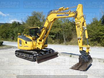 Escavatore cingolato Komatsu PC88MR-11, anno 2022, 800 ore di lavoro, peso 8800 kg, motore Komatsu 3 cil. turbo 68 hp, doppia velocità di trasferimento, valvole di blocco, lama, impianto pinza/rotazione, impianto martello, trasmissione idrostatica, n. 02 benne da scavo 400-1100 mm, gancio di sollevamento, attacco rapido anteriore idraulico Cangini CR70 Twin Lock, videocamera posteriore e laterale destra, pompa rifornimento elettrica, cabina chiusa con riscaldamento, aria condizionata, lunghezza stick 2100 mm, tetto apribile, linea drenaggio, sedile riscaldato.IL PREZZO INDICATO E' IVAESCLUSA.