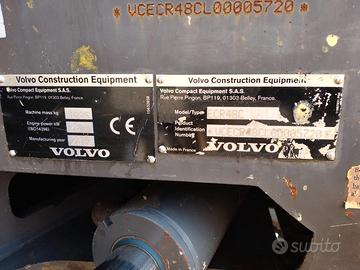 Escavatore cingolato Volvo Modello ECR48C Anno: 2012 Ore: 4400 circa Matricola: VCECR48CL00005720 Motore: Volvo D2.2DCAE2 4 cilindri STAGE IIIA Potenza motore: 26 Kw - 35 CV Larghezza cingolo in gomma: 400mm Dimensioni: Peso: 4850 Kg Larghezza cingoli: 400 mm Larghezza: 1950 mm Lunghezza: 4939 mm Altezza: 2569 mm