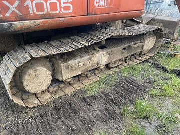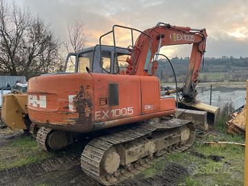 Escavatore Fiat Hitachi EX 100.5 , anno 2000 , 14800 ore di lavoro. Macchina completa di impianto combinato, benna pulizia canali orientabile, benna scavo stretta, benna scavo standard, benna liscia, completo di sella sui perni, tubi e innesti.