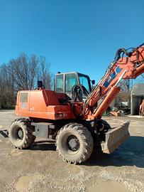 escavatore gommato Fiat Kobelco EX 125 W anno 2004 ore 8500 completo di 2 benne, trincia idraulica per pulizia fossi, polipo, gommoni nuovi montati+gomme doppie di scorta. Possibile acquisto senza accessori Euro 31000+iva