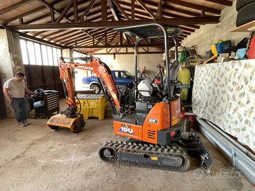 Escavatore Hitachi Zaxis 19 U - 6, anno 2025, 300 ore di lavoro. Macchina canopy, con impianto idraulico combinato trincia martello, sdoppio pistone benna con rubinetto per utilizzo pinza, completa di attacco rapido Klac e tre benne.