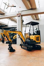 Possibilità prova e visione in sede a Carpi(MO) Garanzia ed assistenza tecnica in sede in Italia. Esavatore 10Q Motore: KOOP EURO V Configurazione: azionamento meccanico, attacco rapido meccanico, cingoli in gomma, braccio oscillante. Allestimento: tettuccio a 2 gambe 6800 i.i. Escavatore 12Q Motore: KOOP EURO V / KUBOTA Configurazione: azionamento meccanico/Joystik idraulici. attacco rapido meccanico/semiautomatico cingoli in gomma, braccio oscillante. Carro allargabile/Non allargabile Allestimento: tettuccio a 2 Gambe / 4 Gambe A partire da 7800 i.i. Escavatore 16Q Motore: KUBOTA/LAIDONG Configurazione: Joystick idraulici, Attacco rapido semiautomatico, cingoli in gomma, braccio oscillante. Carro fisso/Carro allargabile Allestimento: tettuccio a 4 gambe A partire da 11.900 i.i. Escavatore 18Q Motore: KUBOTA / LAIDONG Configurazione: Joystick idraulici, Attacco rapido semiautomatico, cingoli in gomma, braccio oscillante. Carro allargabile/Non allargabile Allestimento: tettuccio a 4 gambe A partire da 12.900 i.i. Escavatore 20Q Motore: YANMAR EURO V Configurazione: Joystick idraulici, Sistema Hengli, braccio oscillante, due modalità di marcia, estensione/retrazione dei cingoli, cingoli in acciaio, pompa a pistoni, attacco rapido idraulico + pinza idraulica a pollice Allestimento: tettuccio a 4 gambe / Cabinato Da 23.000 Escavatore 25Q Motore: Yanmar EURO V Configurazione: Pompa a pistoni Nachi, joystick idraulici, braccio oscillante, estensione/retrazione dei cingoli, due modalità di marcia, Cingoli in gomma, attacco rapido idraulico + pinza idraulica a pollice Allestimento: Cabinato A/C 33.000 i.i. Escavatore 40Q Motore: YANMAR EURO V Configurazione: Joystick idraulici, Sistema Hengli, braccio oscillante, due modalità di marcia, estensione/retrazione dei cingoli, cingoli in acciaio, pompa a pistoni, attacco rapido idraulico + pinza idraulica a pollice. Allestimento: Cabinato A/C 43.200 i.i.