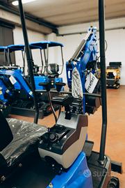 Configurazione: azionamento meccanico/Joystik idraulici. attacco rapido meccanico/semiautomatico cingoli in gomma, braccio oscillante.