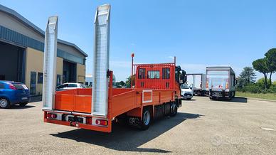 Anno 2017 - euro 6 - cambiomanuale 6 marce - sospensioni pneumatiche posteriori - alzacristalli elettrici- ABS - tachigrafo digitale - sedile guida pneumatico - posti a sedere 2 -vetri elettrici - rilevatore antisbandamento - parete posteriore cabinafinestrata - pneumatici 225/75R17.5 - pianale con rampe e verricello 24v con telecomando con cavo - misure interne:lunghezza mt 4.95 larghezza mt 2.22 rampe mt 2.60 sponde da 40 - portata complessiva q.li 74.90 utile q.li 31.40 - km 208800.